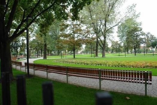 "Założenie na planie rombu, z owalnie przebiegającą aleją topolową zostało zaplanowane na terenie pofortecznym. Po gruntownej modernizacji przeprowadzonej w 2008 r. park cieszy mieszkańców m.in. podświetlaną kolorowym światłem fontanną oraz bardziej urozmaiconą rzeźba terenu. Na terenie parku znajduje się też miejsce pamięci poświęcone poległym w czasie II wojny światowej mieszkańcom tych okolic".