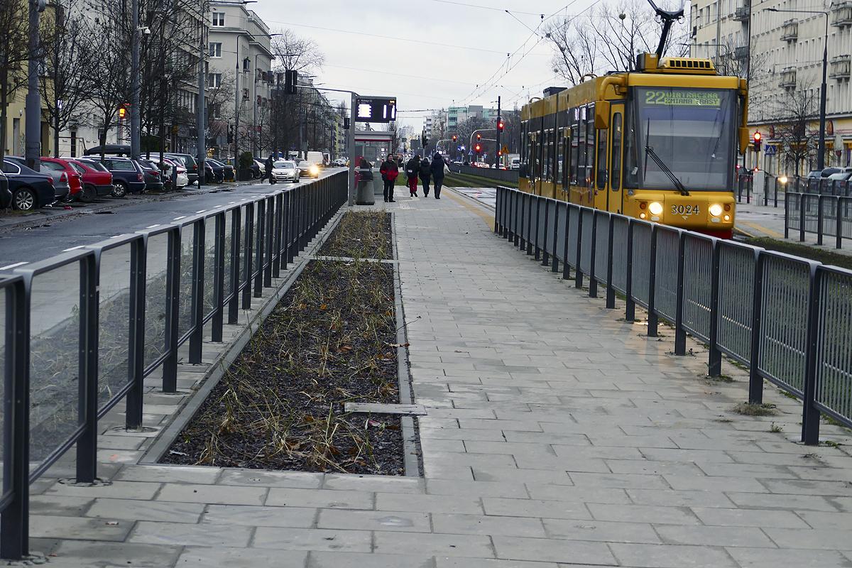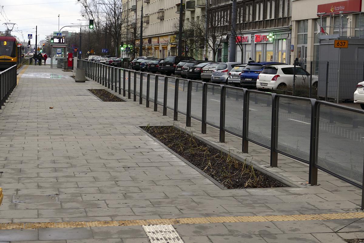 Trawnik na przystanku tramwajowym przy ulicy Grochowskiej
